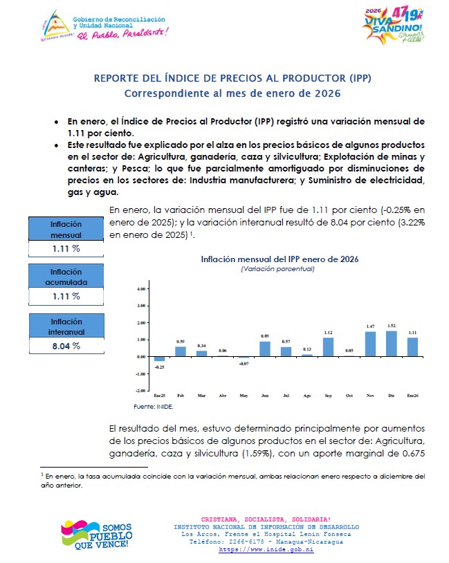Comportamiento del Índice de Precios al Productor (IPP) en Enero 2026.